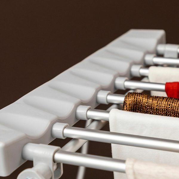 - 8 θερμαινόμενες ράβδους: η ηλεκτρική μας απλώστρα έχει 8 ράβδους που θερμαίνονται για να στεγνώνουν τα ρούχα πιο γρήγορα, όντας πολύ χρήσιμο το χειμώνα. Οι ράβδοι στεγνώματος της προσφέρουν ευρεία επιφάνεια τοποθέτησης. Αυτή η ηλεκτρική απλώστρα ρούχων είναι κατάλληλη για όλους τους τύπους ενδυμάτων και υποστηρίζει το πολύ 12 κιλά ρούχα.